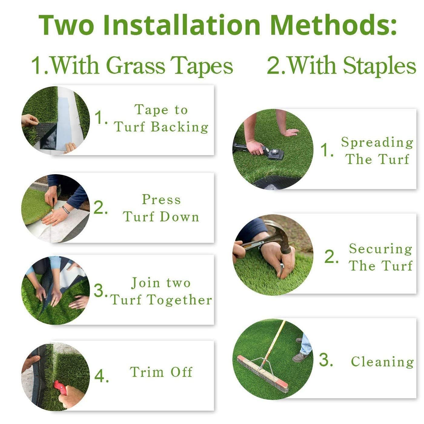 Easy to cut according to your needs. Suitable for indoor and outdoor use, such as grass. Ideal decor for back/front yard, patio, garden, balcony, terraces, gym, etc.