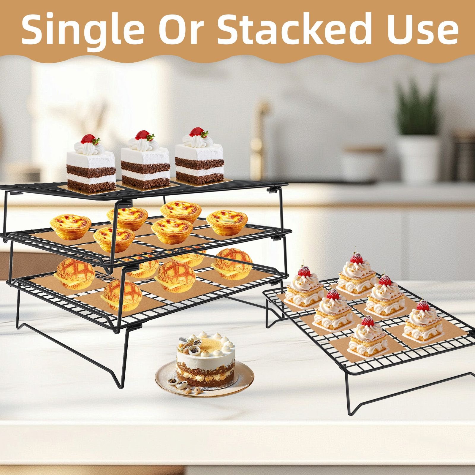 3-Tier Stackable Wire Cooling Rack Set Non-stick, ideal for cooling cookies, pizza, cakes, baking sheets (100 pieces), grilled meats 3-Tier Stackable Wire Cooling Rack Set Non-stick, ideal for cooling cookies, pizza, cakes, baking sheets (100 pieces), grilled meats 3-Tier Stackable Wire Cooling Rack Set Non-stick, ideal for cooling cookies, pizza, cakes, baking sheets (100 pieces), grilled meats