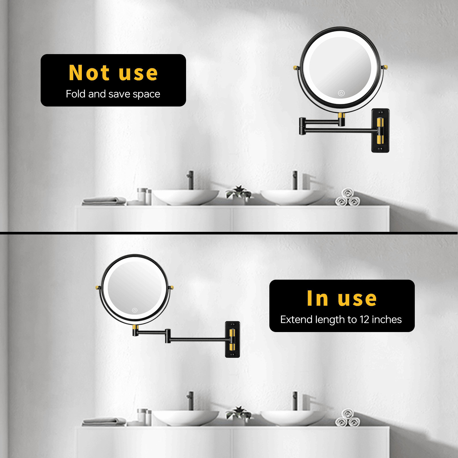 HIGH DEFINITION MIRROR: Made of high-quality metal material, this 8.6-inch wall mounted vanity mirror has a high-definition mirror surface that provides clear reflections, enabling you to perform tasks such as fine makeup application, hair removal and eyebrow grooming with ease.