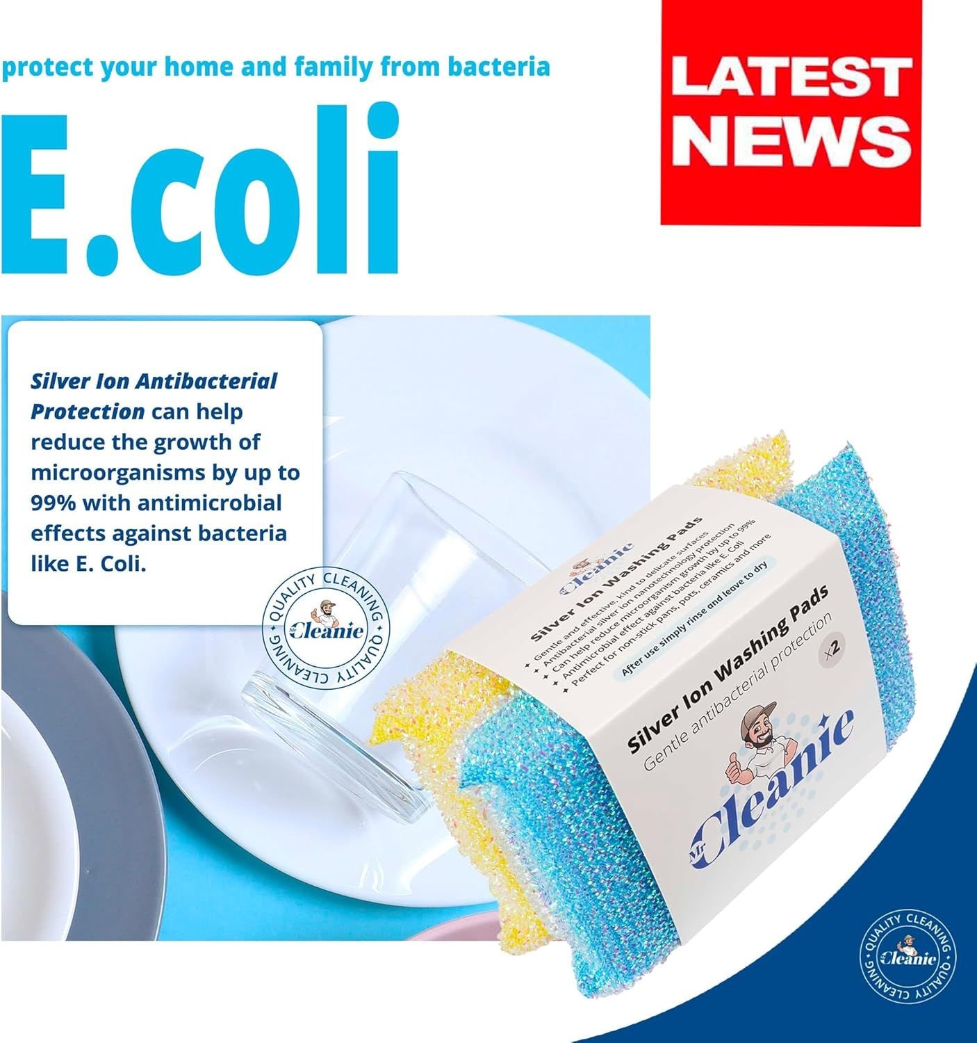 Mr Cleanie Silver Ion Washing Up Non-Scratch Scourer Pads Antibacterial Cleaning Kitchen Bathroom 2-Pack Mr Cleanie Silver Ion Washing Up Non-Scratch Scourer Pads Antibacterial Cleaning Kitchen Bathroom 2-Pack Mr Cleanie Silver Ion Washing Up Non-Scratch Scourer Pads Antibacterial Cleaning Kitchen Bathroom 2-Pack
