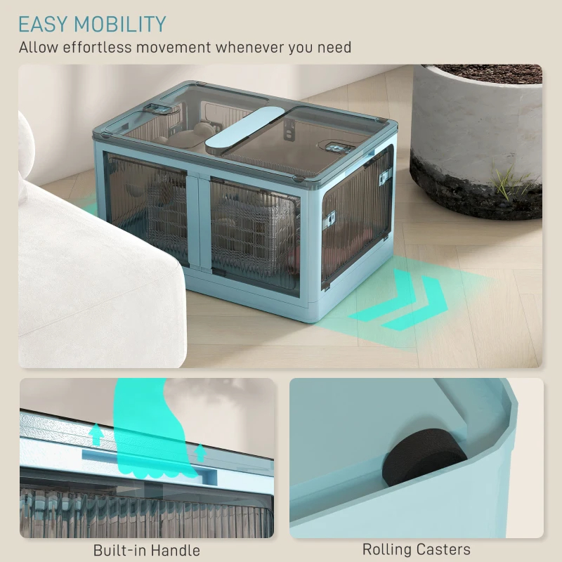 • - Effortless Access from Every Angle: Say goodbye to struggling with hard-to-reach items. With its 5-sided access design, this folding storage box allows you to retrieve and store your belongings conveniently, no matter the situation or location. Each door is fitted with a safe latch to prevent items falling out.