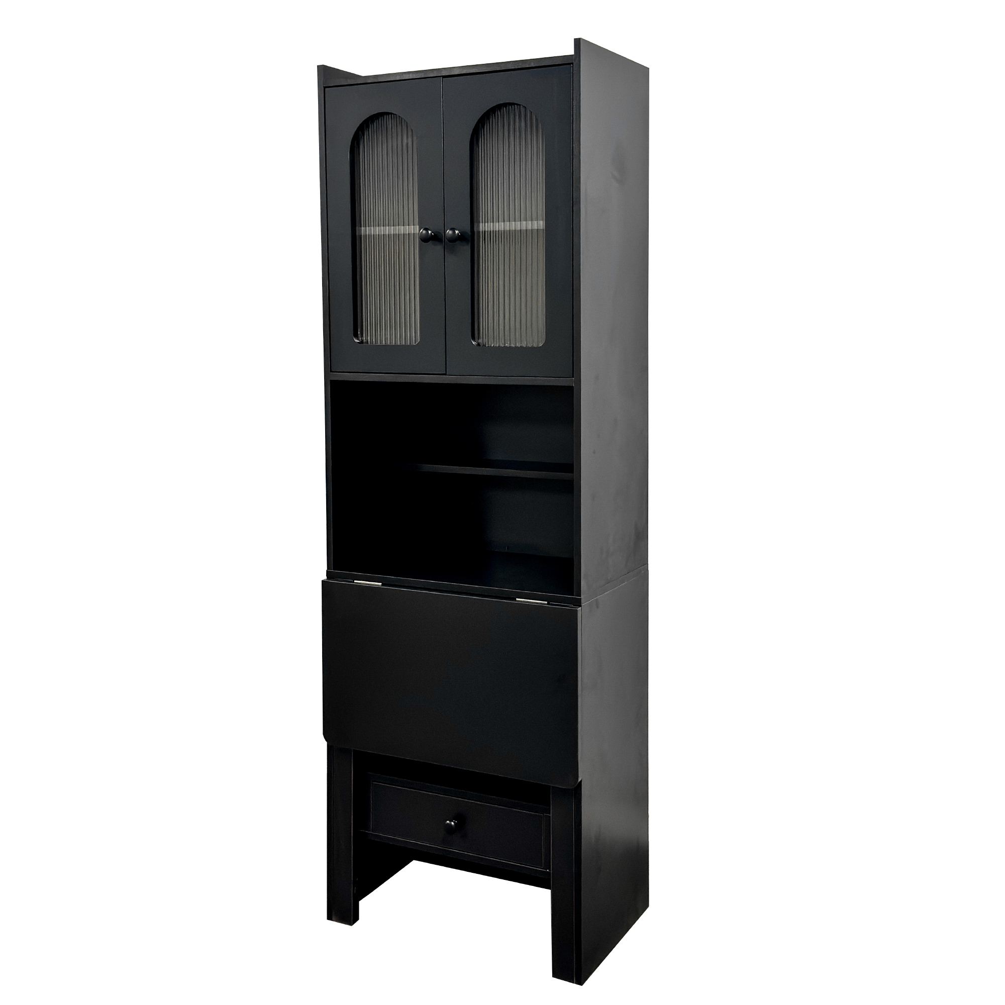Fold-Out Convertible Writing Table, Desk Cabinet with shelf and drawer