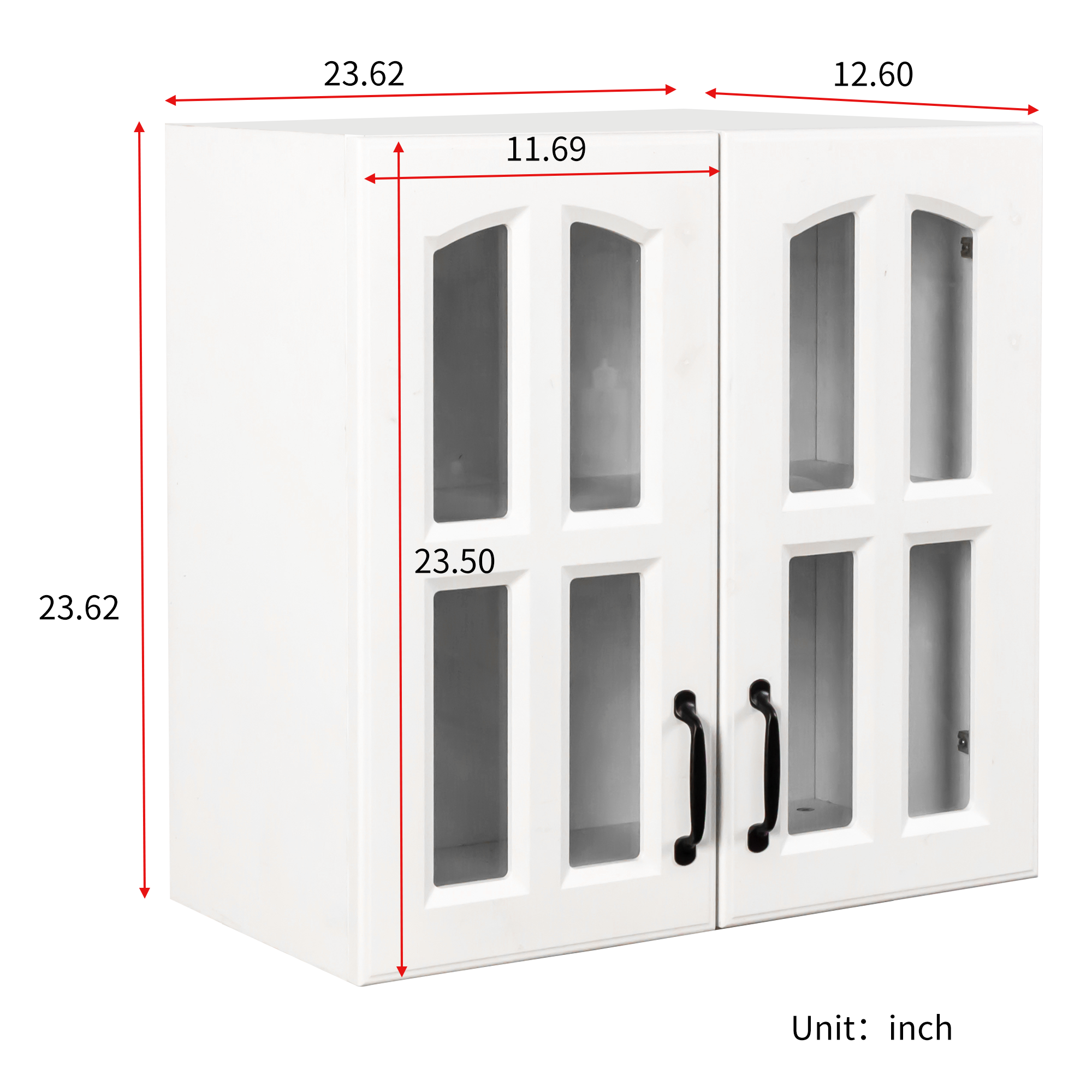 Product Name:Wall Cabinet, Glass door Display Wall Mounted Cabinet, Floating Cabinet with inadjustable Shelves for Kitchen,Bathroom,Living Room