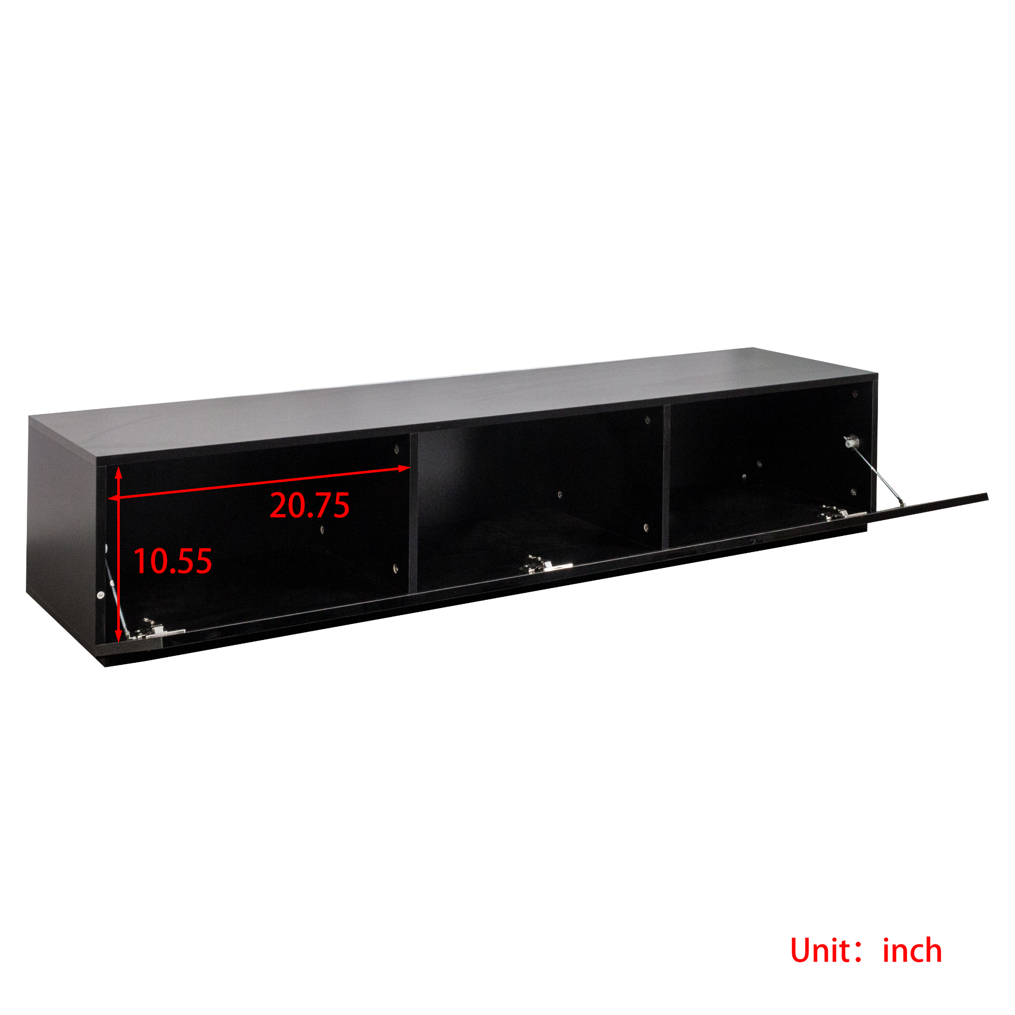 【Generous Storage Space】TV stand provides abundant room for various items thanks to its drop-down cabinets. Besides stowing a media player or other knick-knacks, you can also display decorative objects or treasured family photos on the stand's spacious top surface. In addition to living rooms, the floating TV shelf is also perfect for bedrooms or entertainment centers. Material:Material is 15mm particle bpard,back board is 3mm MDF.Made of wooden structure with melamine finish for durability and easy maintenance. Aufgrund des Lichts oder der Anzeige kann die Farbe des tatsächlichen Produkts geringfügig vom Bild abweichen.