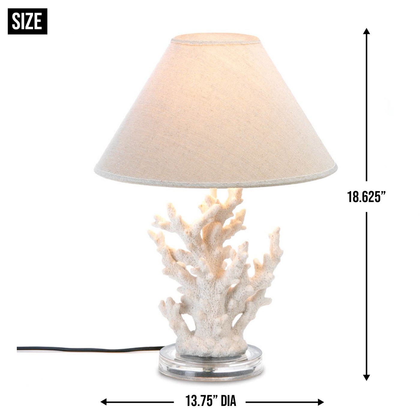 • A splash of seaworthy style to light up your life! This stunning table lamp features artistically rendered ivory sprigs of coral topped with a handsome neutral-color shade. Turn on the lamp and the coral and your room with light up with a warm and inviting glow.